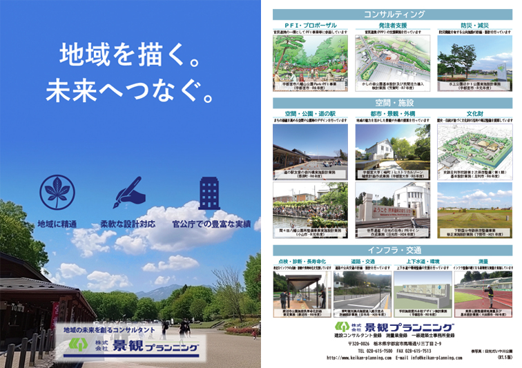 株式会社景観プランニングは、平成8年の設立以来、建設コンサルタントとして都市公園・緑道、防災公園、自然公園や観光施設、まちづくりや景観計画など、多岐にわたる事業に携わってまいりました。