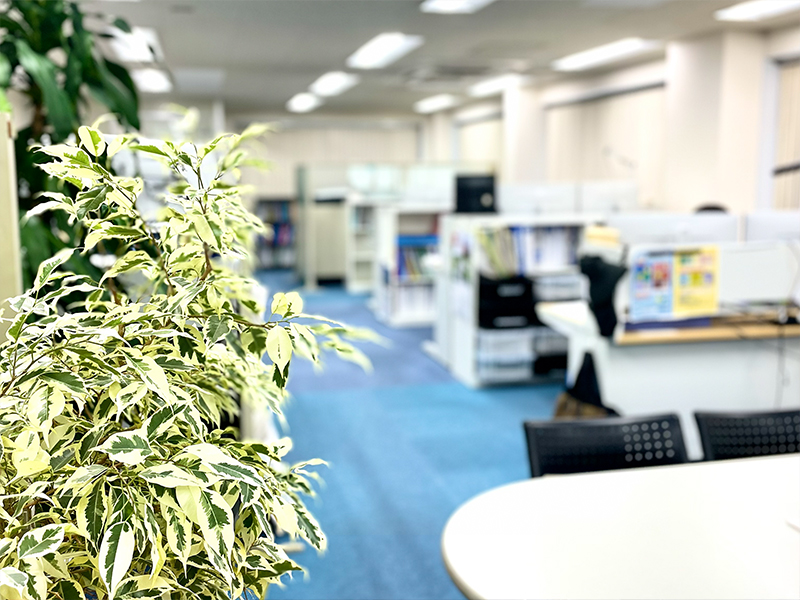 また、希望するOff-JTや資格取得へのサポート、明るく広いデスク周り、充実したデジタルデバイス、清潔感と緑のあるオフィスなど、“人”が主役の勤務環境を整えています。